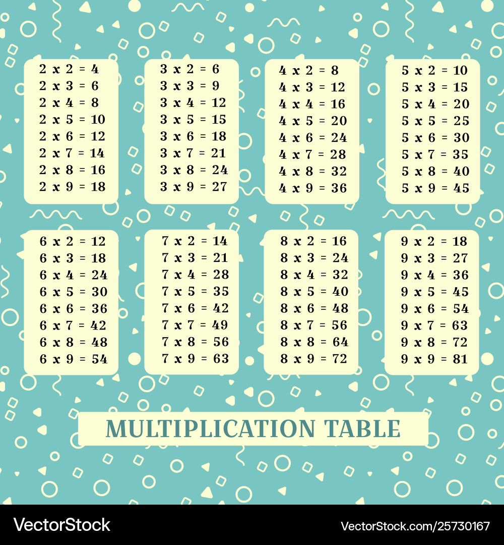 Multiplication table poster for printing Vector Image